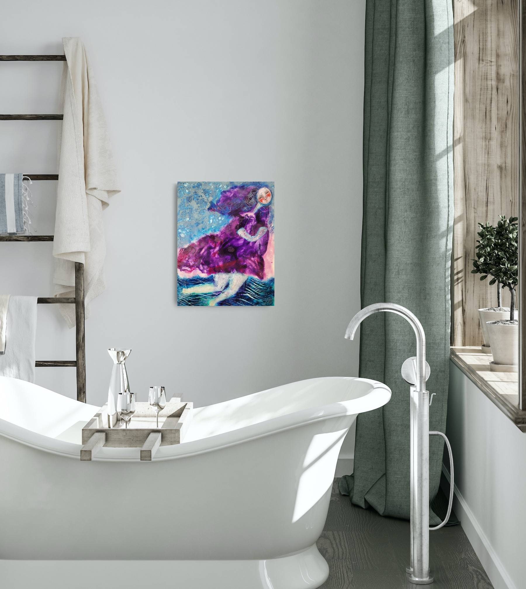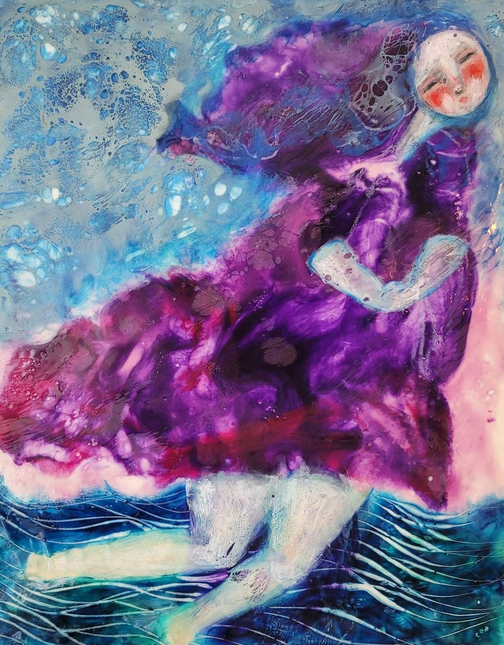 This is an original encaustic wax painting, on cradled wood panel, no frame needed, ready to hang