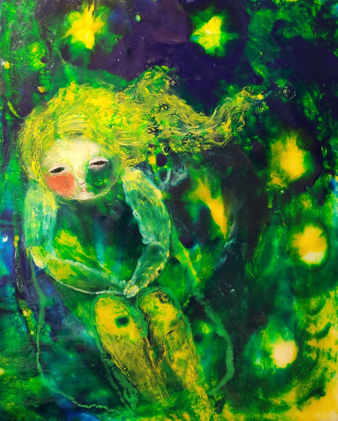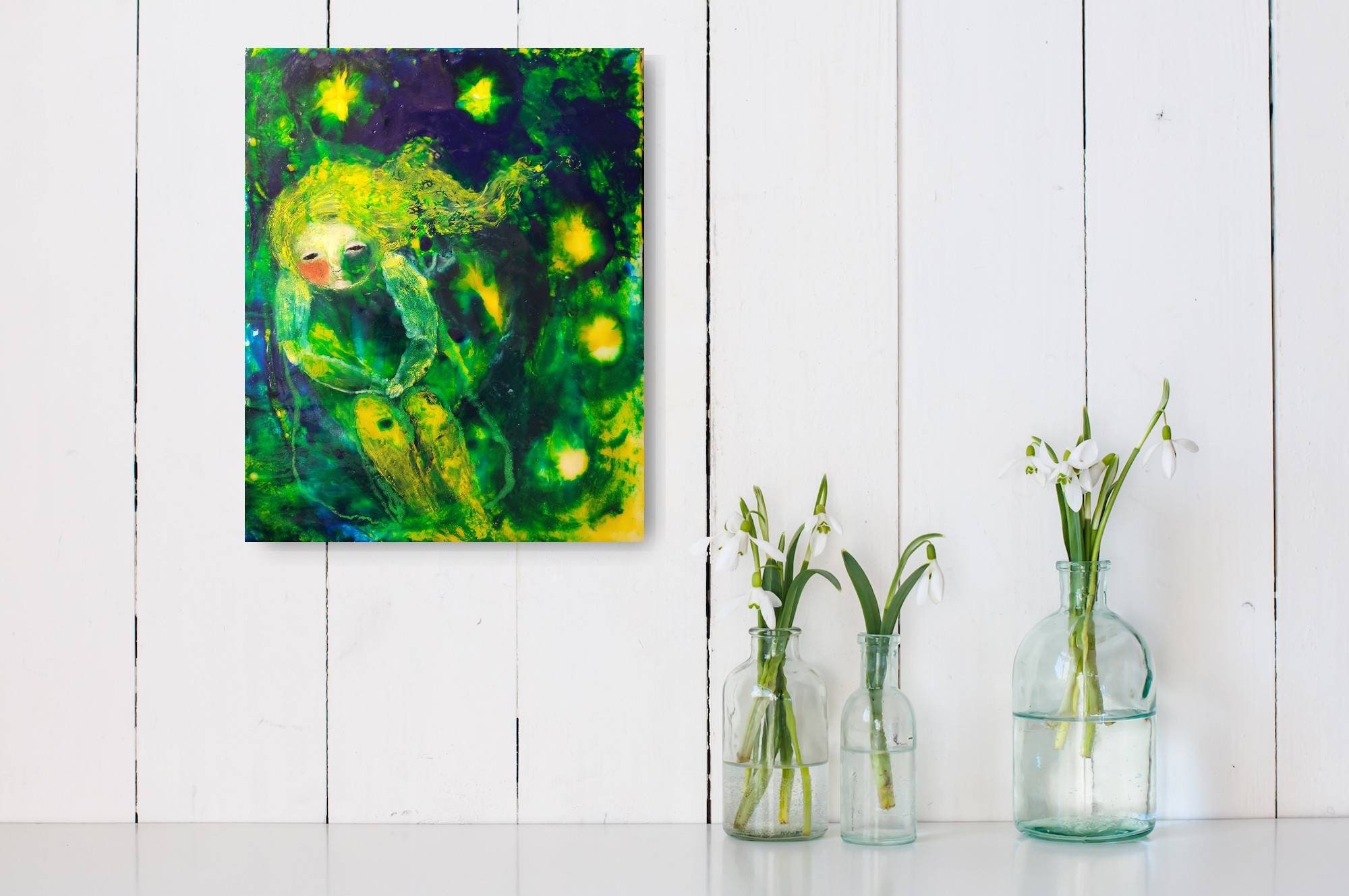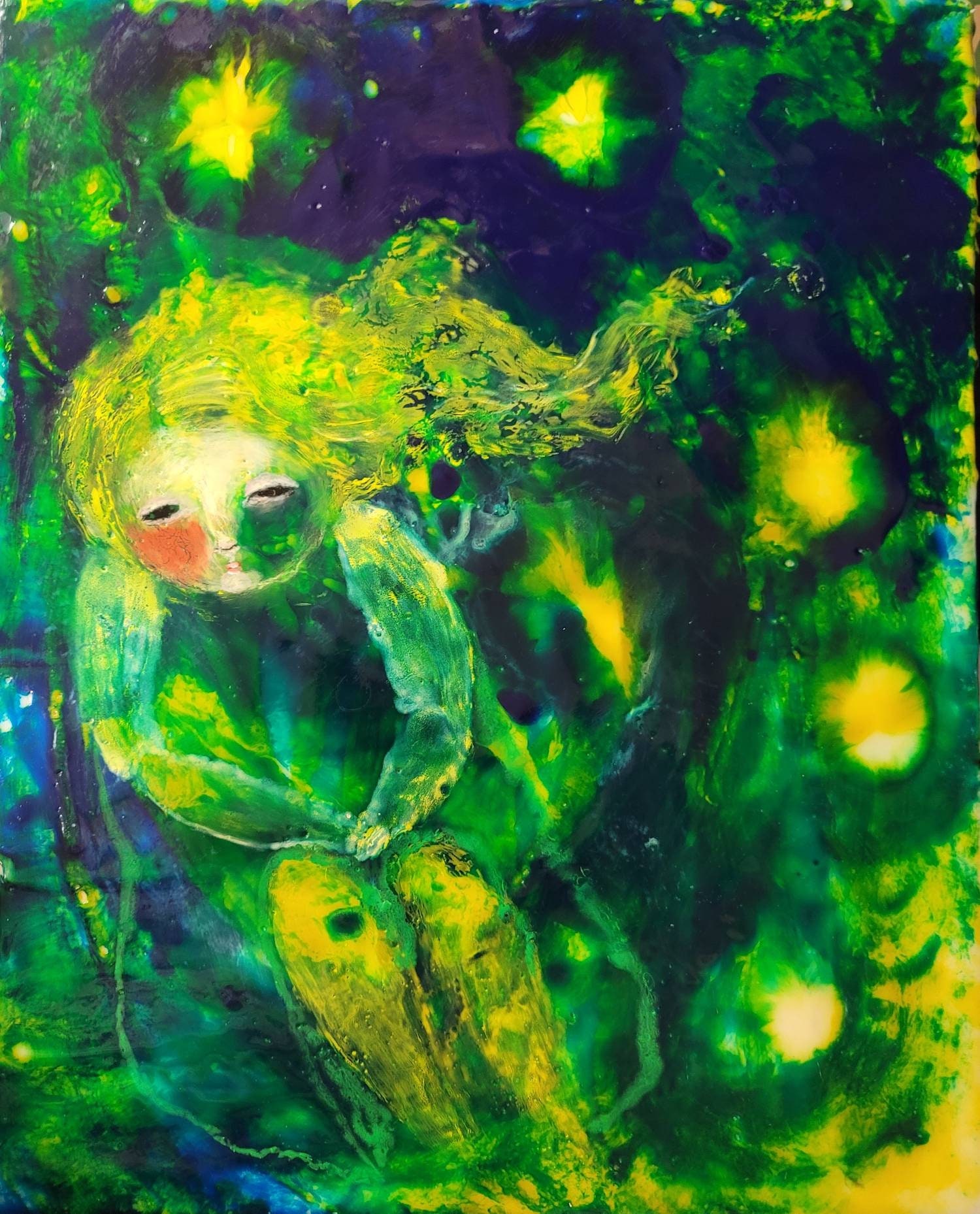 This is an original encaustic wax painting, on cradled wood panel, no frame needed, ready to hang