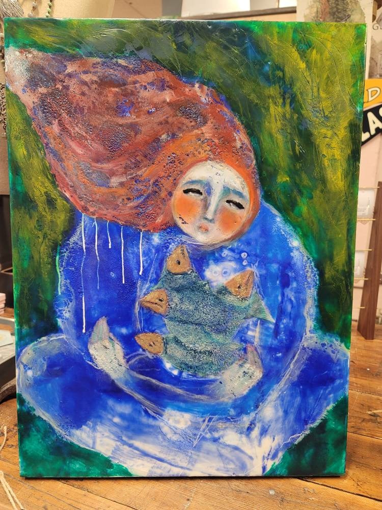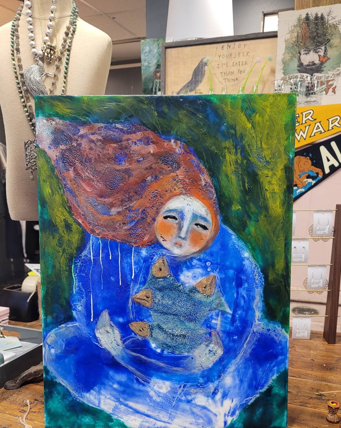 This is an original encaustic wax painting on cradled wood panel, no frame needed, ready to hang